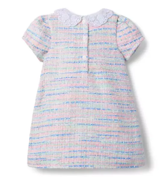 - Tweed all about it. Our spring-ready dress is ready to celebrate. Designed with a floral lace collar and pearl button details.