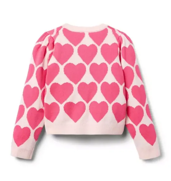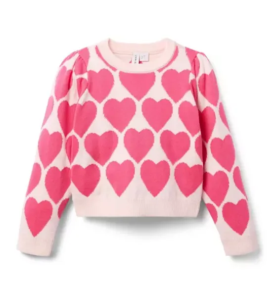- We’re crushing on this cozy sweater. Featuring intarsia-knit hearts, puff sleeves and ribbed details too.