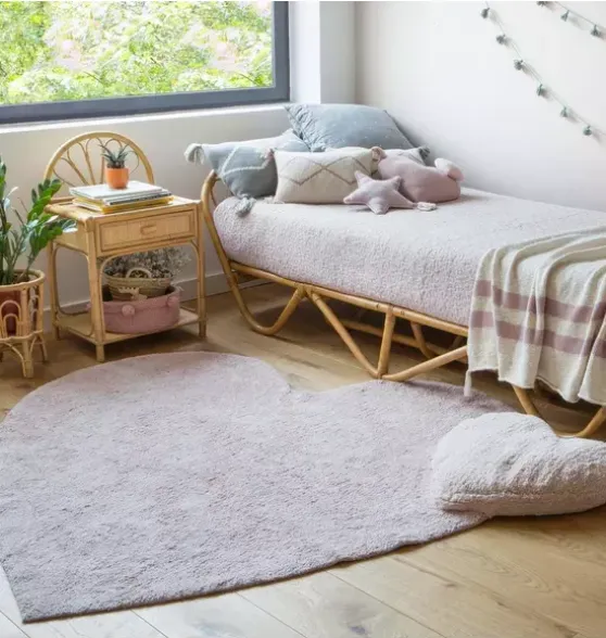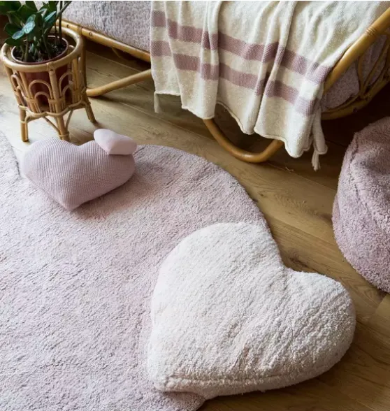 - A rug for a crush! nk base in shape of a heart with a Nude color heart cushion stitched on the side! Share the love and make the little ones’ room a dream come true. It serves as a multi-purpose decorative area rug for kids to enjoy playtime or reading sessions on the floor and dream sweet dreams when they’re done!