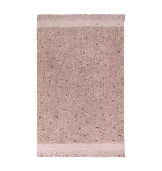 - Rectangular cotton rug with tiny dots in mixed Vintage Nude and Soil Brown color simulating grass, on Vintage Nude / Linen cotton base. Canvas base in mixed Vintage Nude and Soil Brown, visible at the edges and followed by fringes in the same color. Dots on one of the edges and on the other a phrase in embroidery: The cotton song of the woods.
