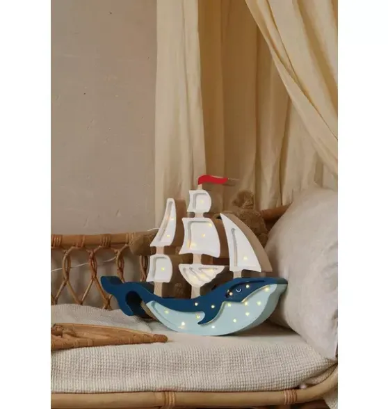 Our one-of-a-kind Little Lights Whale Ship Lamp captures the aura of an adventurous voyage at sea.